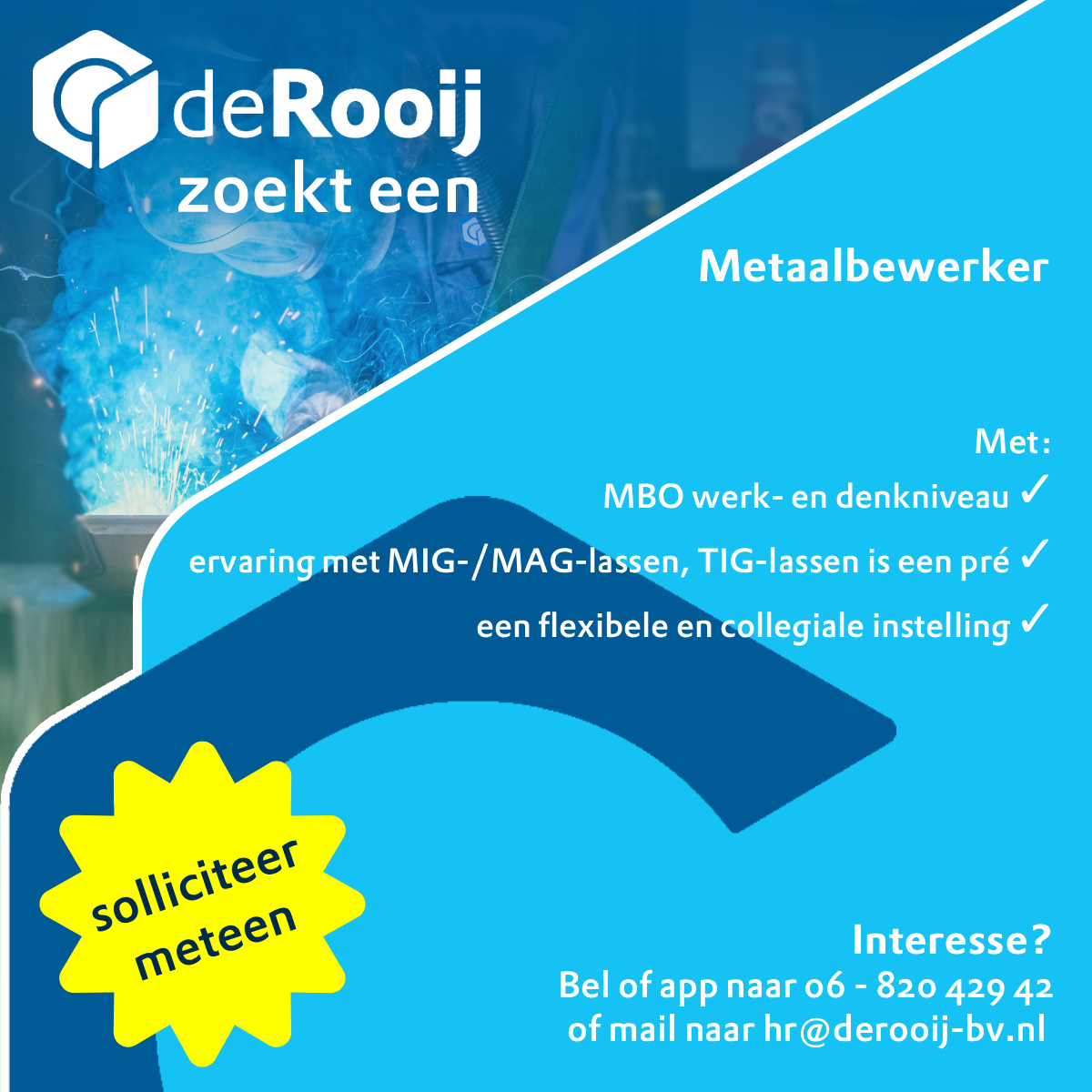 Als metaalbewerker bij De Rooij ben je verantwoordelijk voor het intern produceren van diverse machines voor onder andere afvalverwerkingsmachines, ondergrondse containers en machines voor de agrarische sector. Je kan zelfstandig van een tekening werken en maakt daarbij onder andere perscontainers, transportbanden, hef- en kantelsystemen, behandelboxen, selectiehekwerk en aanverwante producten / machines.